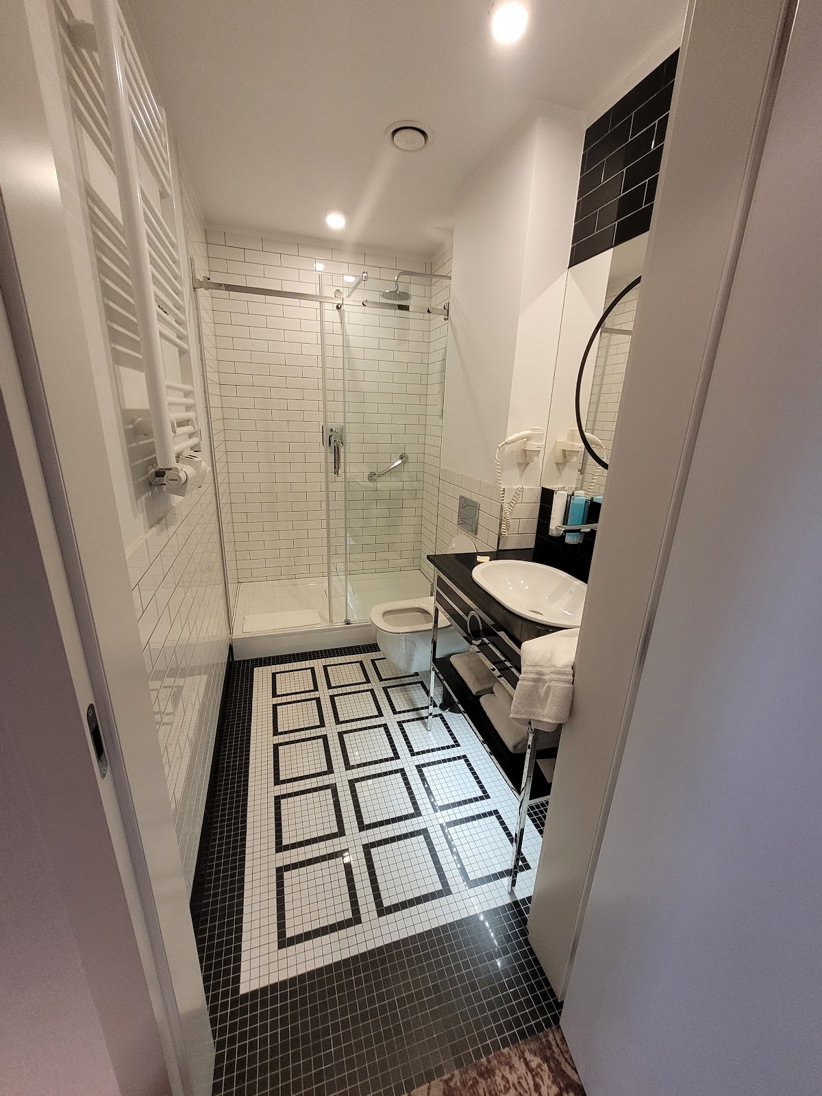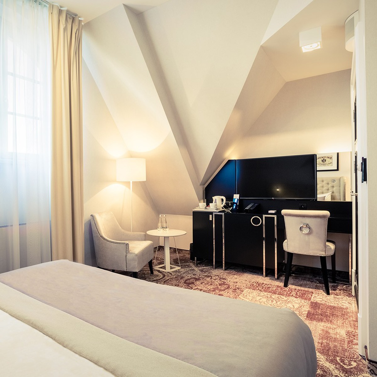 Spacious clean rooms in a historic building with modern touches like underfloor heating keep guests comfortable. The location next to the train station beats everything else. Elevator and wifi don't reach the top floors, so expect stairs and spotty internet up there.