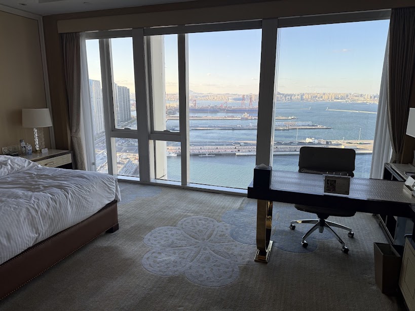 Rooms are slightly dated and smaller than expected for a 5-star hotel, but you get amazing views, excellent service, and the best breakfast in Dalian with good Western options. Staff treat you exceptionally well and the location balances city access with privacy.
