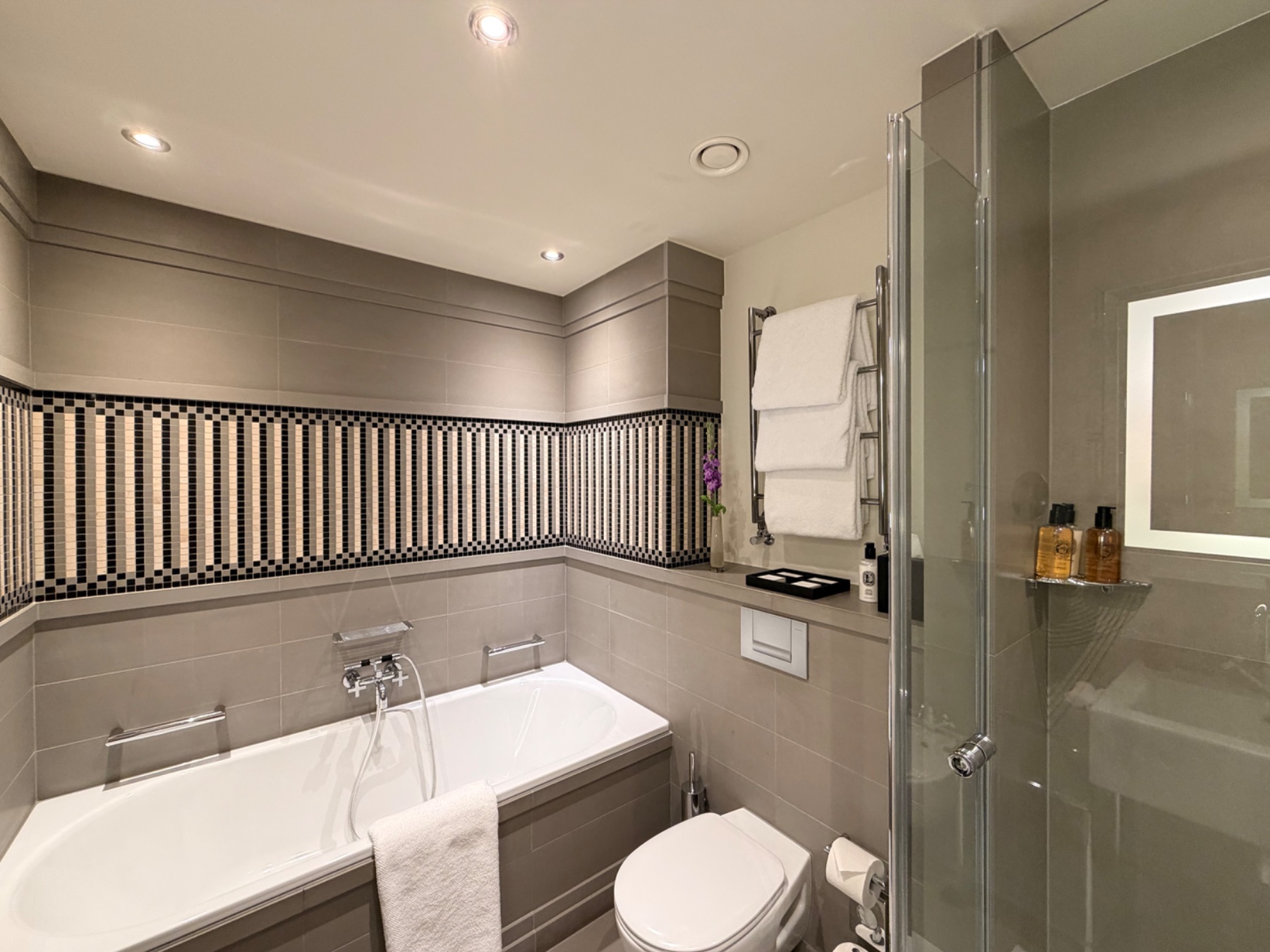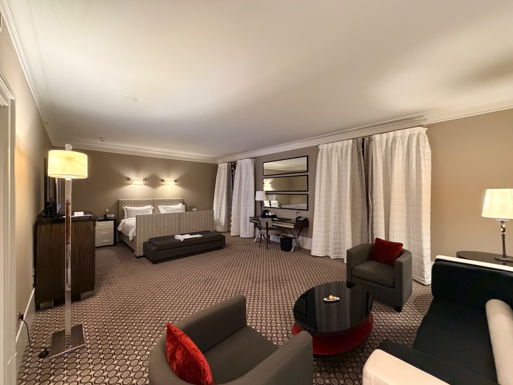 Room 434 was wonderful and massive. I received it as a complementary upgrade from the standard room that I booked, so I’m not sure of the room type. It was large with a king bed and a separate sitting area and a five piece bath complete with a bidet and a soaking tub. There was a terrace outside and although there was no view as it was overlooking an interior courtyard, the hotels, two rooftops more to make up for it with magnificent views of East Berlin. The carpet in the center of the room was a little bit worn, but this was my only critique otherwise a perfect stay.
