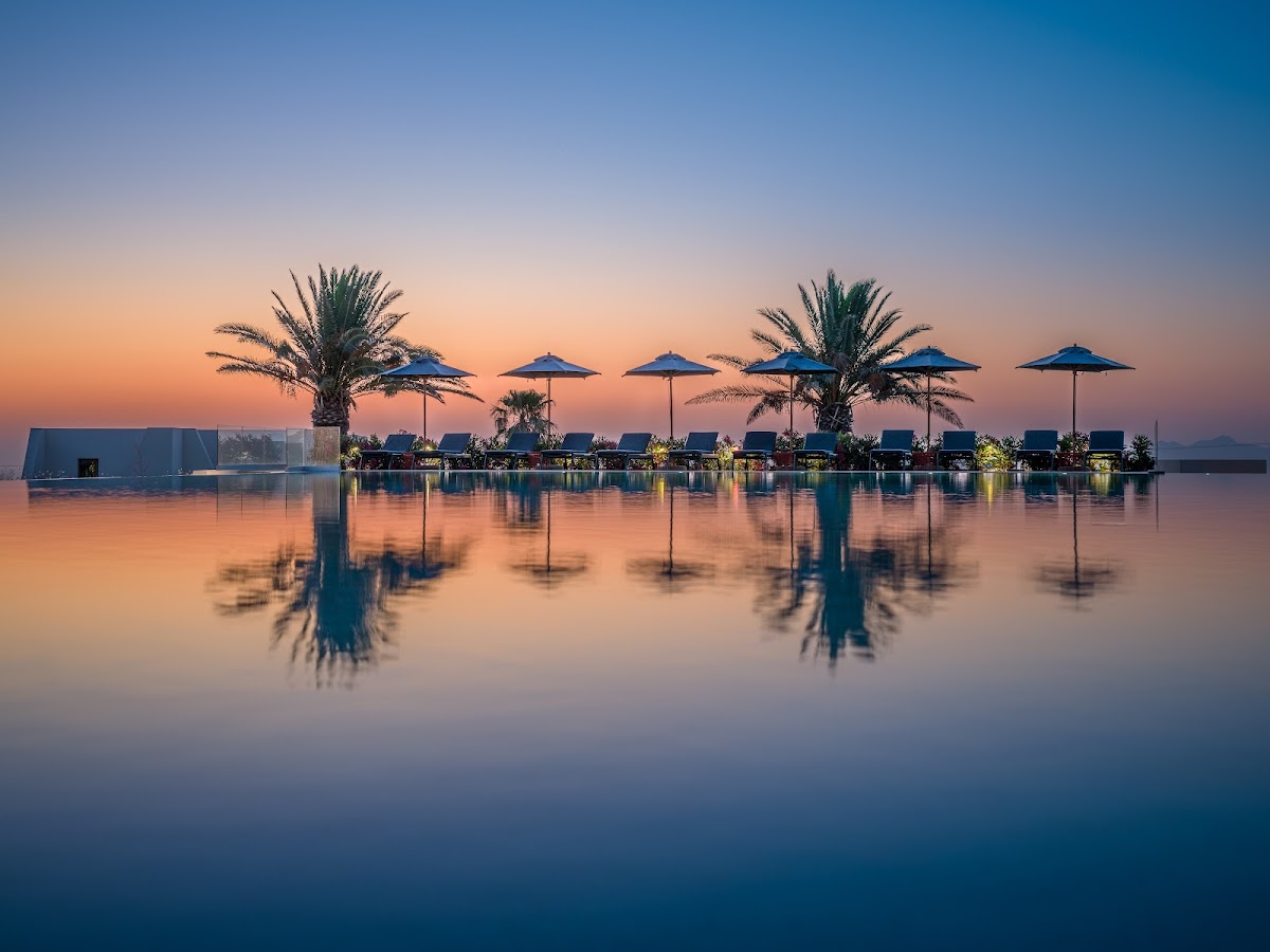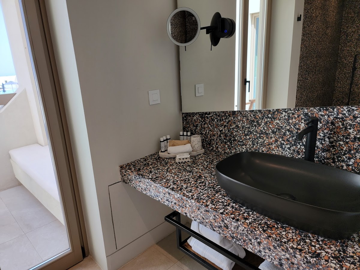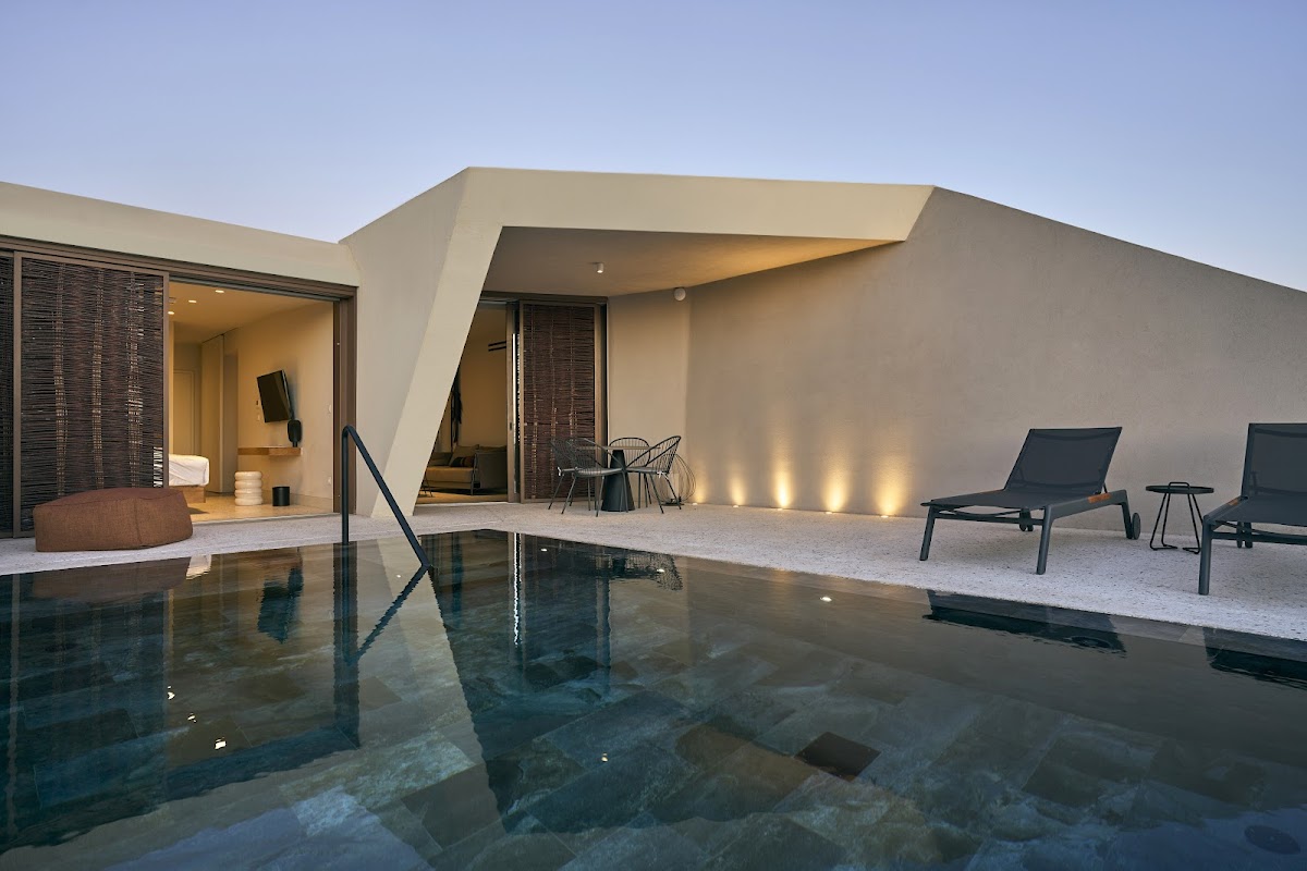 Staff provides exceptional service and the private pool bungalows are spacious and luxurious with heated pools. Breakfast and dining are excellent. However, rooms lack the caldera views shown on the website, with limited views interrupted by power lines. The property sits in Mesaria, a 2-minute walk from buses to Fira.