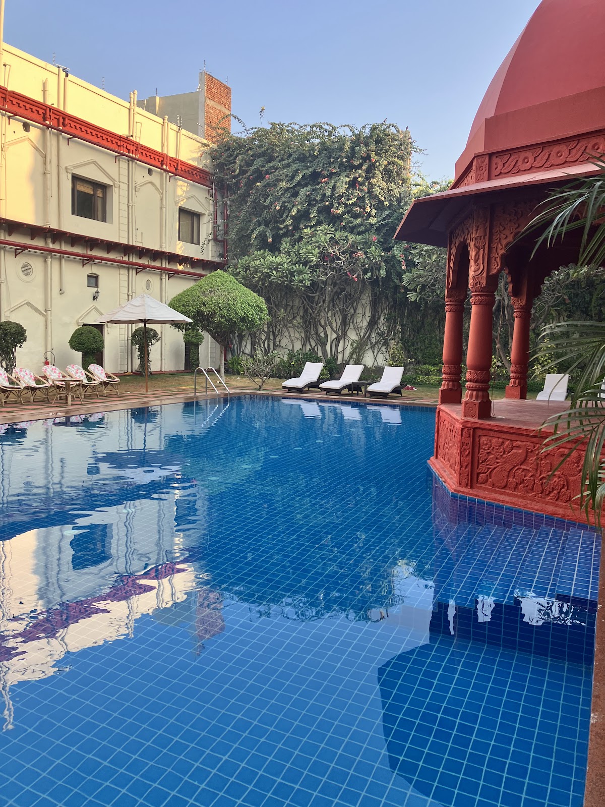 Rooms are spacious, clean, and beautifully decorated with heritage style and modern comfort. Most guests praise the excellent staff and food, though some found them cold. Outside noise from construction traffic disrupts sleep, views vary by room, and the pool was empty during one stay.