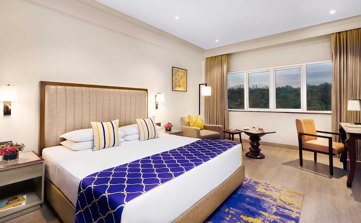 Rooms are spacious and clean but lack work desks and have small bathrooms. Staff vary wildly: some are helpful and attentive, others invisible during service. Location near MG Road is excellent, but expect inconsistent service quality for a five-star property.